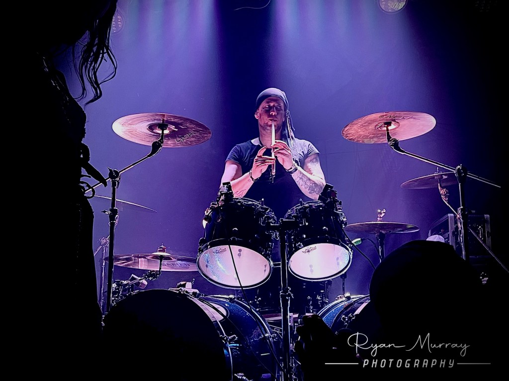 Opening the show was a band called “Everdawn”, a symphonic metal band originally from New Jersey that was originally known as Midnight Eternal. The band rebranded themselves as “Everdawn”, which included the addition of Alan D’Angelo on Bass and the incredible vocal talent of Alina Gavrilenko. Everdawn puts on an absolutely incredible show! Everything from their stage presence, chemistry and sound is incredible! Their sound reminds me of earlier Nightwish, which for me is huge as a fan of Nightwish since 2000. Fischer and D’Angelo play incredibly well together on guitar and bass respectively, weaving in incredible melodies throughout. Zaks’s keys adds incredible layering while Prestup’s drums were both heart-pounding and beautifully in the pocket. Gavrilenko’s vocals are absolutely incredible! She has an incredibly beautiful tone, great control and use of range! Of no fault of her own, the mix had her vocals kind of muddled, but she expertly made up for that with her vocal projection.